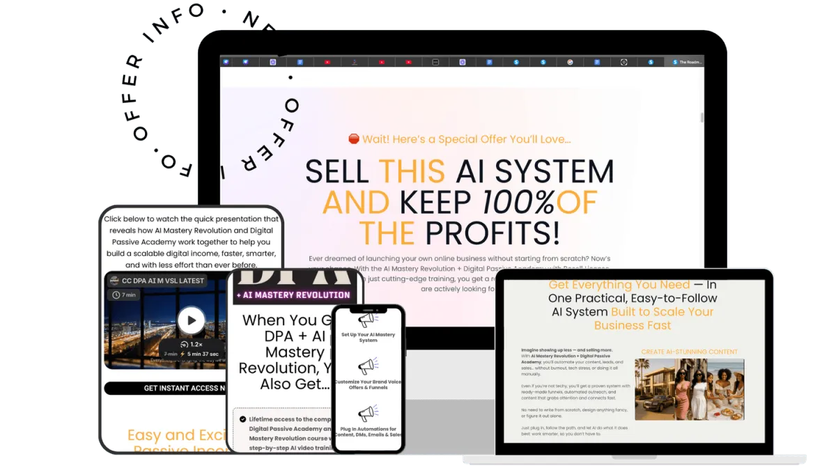 With Digital Passive Academy + AI Mastery Revolution, you get Master Resell Rights, which means once you purchase it, it’s yours to resell as your own. You can rebrand it, market it, and sell it for 100% profit. No middleman. No commission splits. No waiting to get paid.